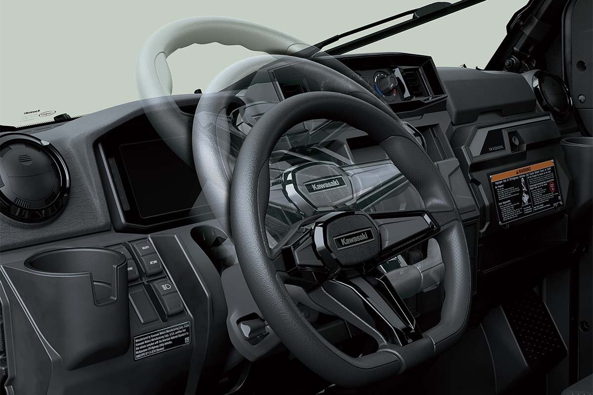 7” high-grade full-colour TFT LCD screen with speedometer, tachometer, fuel gauge, gear indicator (L, H, N, R), Driving Mode (2WD/4WD/4WD+Diff Lock), Power Mode (Work/Normal/Sport), clock, CVT temperature; selectable display that includes: digital tachometer, odometer, dual trip meters, total time, trip time, average speed, water temperature, battery voltage; Bluetooth indicator, Economical Riding Indicator, maintenance reminder (2 driver-selectable reminders), and a range of indicators and warning lamps